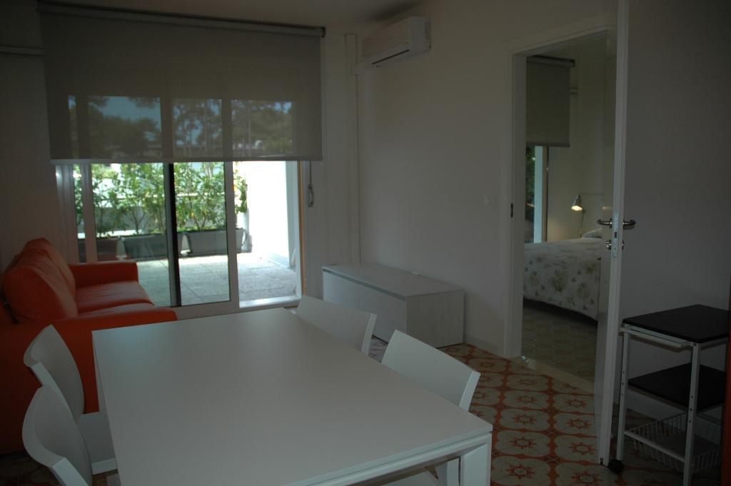 Typ B1: renovierte Wohnung mit Wohn-/Esszimmer mit Schlafcouch und Kochnische, 1 Badezimmer mit Dusche und 2 WC, geräumiges Schlafzimmer mit einem Doppelbett und Stockbett durch Schiebetür voneinander abgetrennt, große Eckterrasse. Für 4-5 Personen. Gut geeignet für Familien mit Kindern - Klimaanlage.