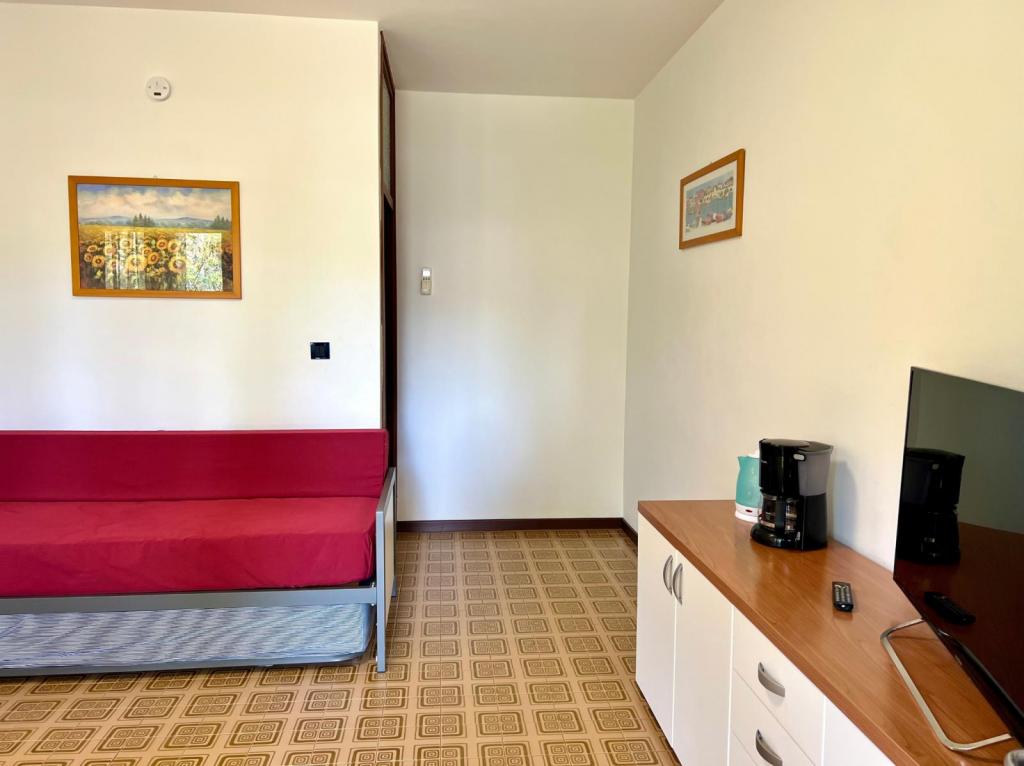 Typ VF. Wohnschlafraum mit Essplatz und Doppelcouch, getrennte Kochnische, Dreibettzimmer, Stockbettzimmer, Duschkabine/Wc. Moeblierte Balkon oder Terrasse. Max 7 Pax.