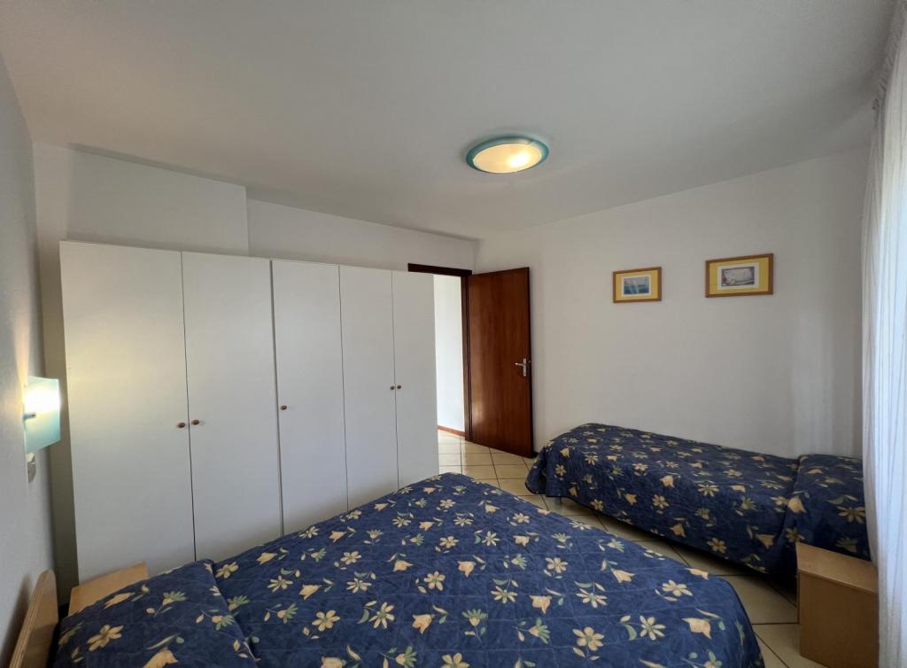 Typ VE. Wohnschlafraum mit Kochecke und Doppelcouch, Dreibettzimmer, Duschkabine/Wc und offene Terrasse. Max 5 Pax. 35 qm