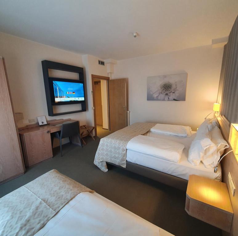 Reisen Sie in Gesellschaft? Sind Sie eine Familie? Das Hotel Europa bietet große Zimmer für 3-4-5 Personen mit Verbindungstür. Die Lösungen sind mit einem Schlafzimmer mit einem Doppel- und einem Einzelbett oder nur mit einem Doppelbett und einem Schlafzimmer mit einem Stockbett oder zwei nebeneinander liegende Einzelbetten erhältlich. Auf Anfrage kann ein Kinderbett hinzugefügt werden.