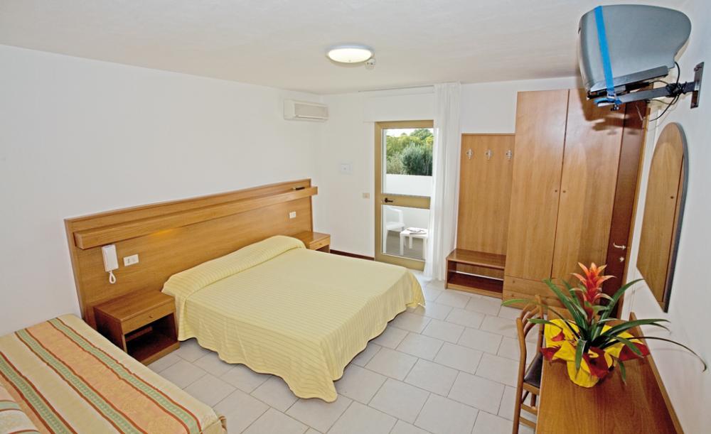 Fuer maximal 4 Personen, Mit Balkon, Blick zum Schwimmbad und von Pineta, Phon, Dusche, WC, Telefon, TV sat, Tresor und Klima-Anlage. Zimmer-Ausstattung: 1 Ehebett, 1 Stockbett mit 2 Betten oder 1 Kinderbett