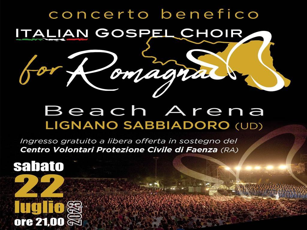 Nach der jüngsten und erfolgreichen Fernsehbeteiligung auf Canale 5 als Gast der Mediaset-Programmpräsentation kommt der italienische Gospelchor am Samstag, den 22. Juli 2023, mit 200 Sängern aus ganz Italien zu einem Benefizkonzert nach Lignano Sabbiadoro (UD). zugunsten der Bevölkerung der Romagna, die von den Überschwemmungen im vergangenen Mai betroffen war.