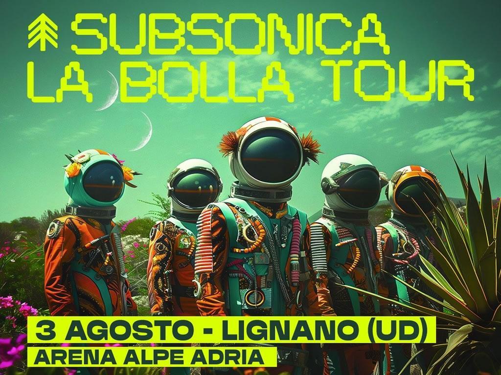 Subsonica werden die Protagonisten der „LA BOLLA TOUR“ sein, einer musikalischen Reise, die sie den ganzen Sommer über in den faszinierendsten Arenen erleben wird. Lassen Sie sich von der Energie von „Augmented Reality“ mitreißen, dem Werk, das den Auftakt für das Jahr 2024 darstellte. Während der Veranstaltung haben Sie die Möglichkeit, unvergessliche Hits wie „Liberi tutti“, „Discolabirinto“ und „Nuvole Rapids“ noch einmal zu hören “, „Alle meine Fehler“ und „Der Himmel über Turin“.