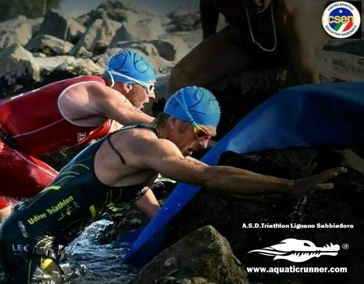 Von Grado nach Lignano Sabbiadoro für eine Gesamtstrecke von 27,1 km, Schwimm- und Laufstrecke! dies ist die 10. Ausgabe des Aquatic Runner Italy 2023 Xtrim Border Lagoon!